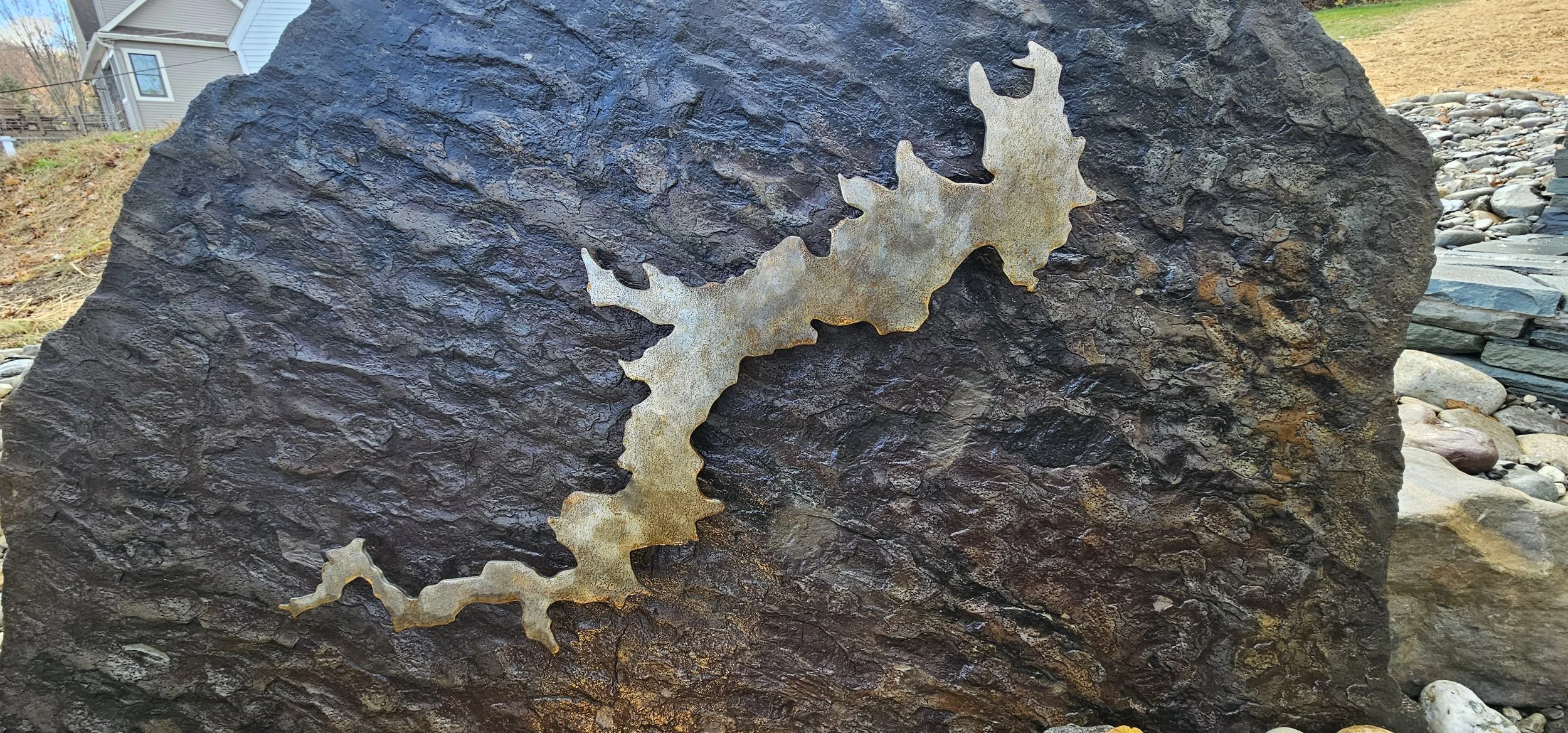 Large slab stone, or boulder to attach any signage. Great for addresses, or as a statement piece in your installation